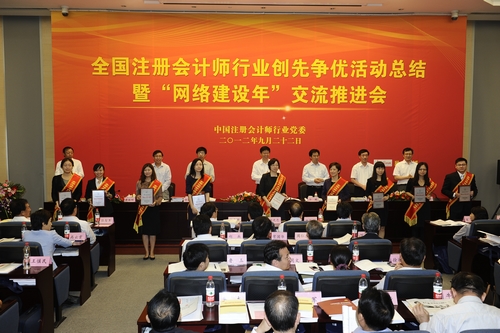 有关地方行业党组织、事务所党组织、注协和优秀党员代表在会上作了交流发言,中注协副秘书长杨志国通报了行业“网络建设年”活动进展情况。会议对行业国际合作、品牌建设创先争优岗位能手和行业青年创先争优岗位能手进行表彰和颁奖。