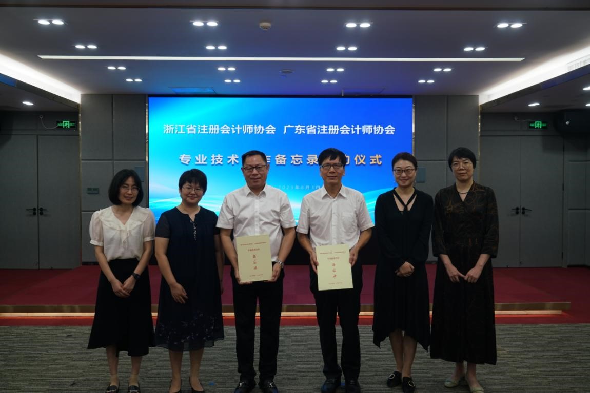 为贯彻落实中国注册会计师协会印发的《注册完美体育365(中国)官方网站发展规划(2021-2025年)》,提升行业专业服务水平,更好发挥财会监督作用,2023年8月3日,完美体育365(中国)官方网站专业指导委员会与浙江省注册会计师协会专业技术委员会举行专业技术合作备忘录签约仪式。浙江注协副会长兼秘书长戴晔沸、广东注协秘书长穆慧姝出席签约仪式。主任委员陈锦棋、王越豪分别代表广东注协、浙江注协专业指导委员会签署合作备忘录,两地注协正式建立专业技术合作机制。